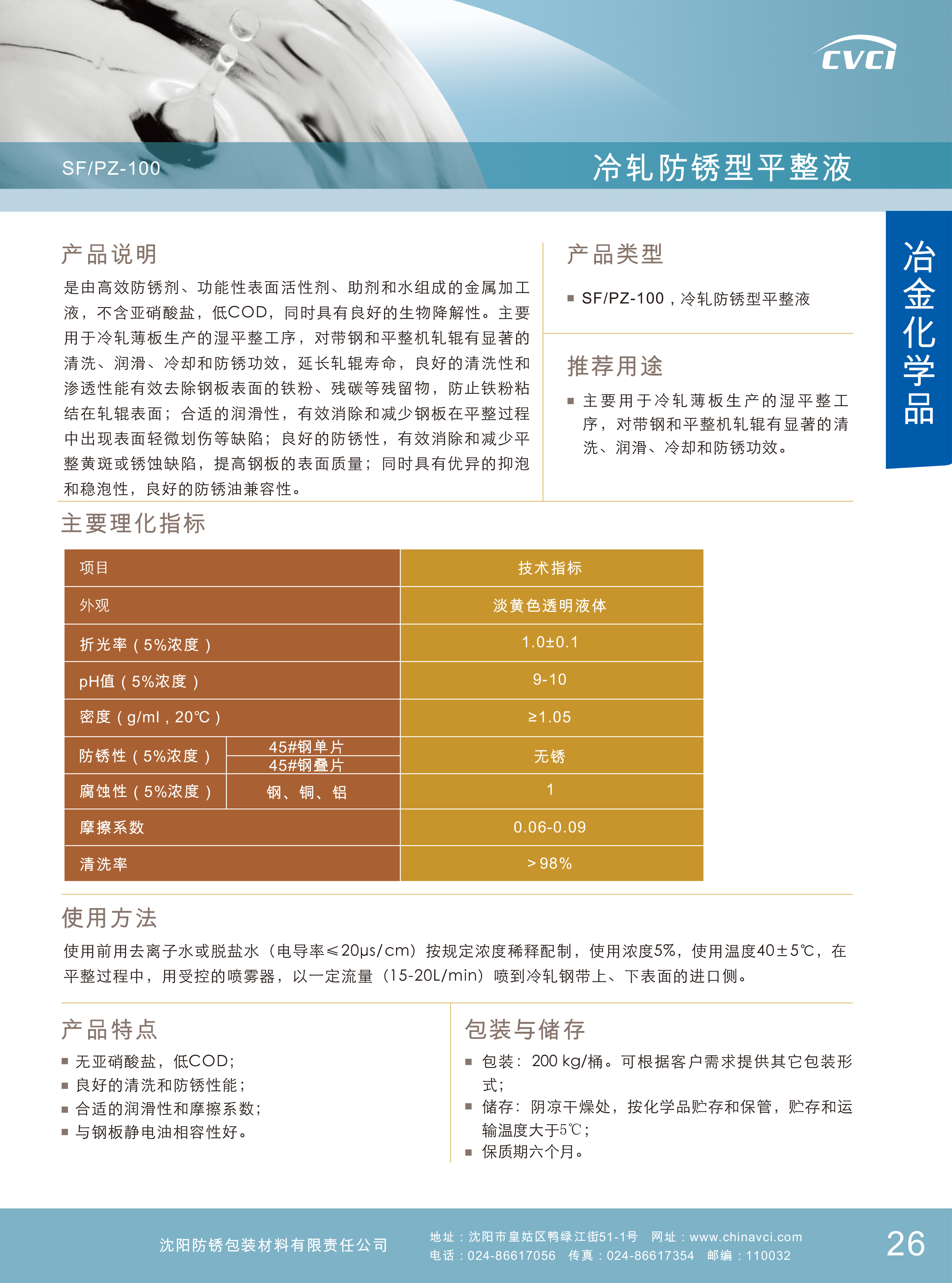 主要用于冷軋薄板生產的濕平整工序,對帶鋼和平整機軋輥有顯著的清洗、潤滑、冷卻和防銹功效,延長軋輥壽命,良好的清洗性和滲透性;